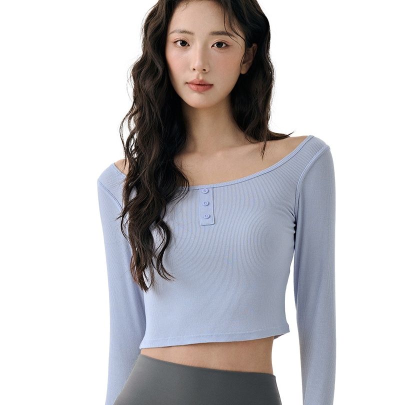 ピラティス練習に最適な安い七分袖トップスウェアです。