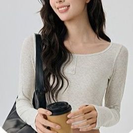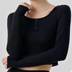 柔らかなリブ編み素材が身体にやさしくフィットする、ヨガウェアとしても普段使いにも最適なトップスです。