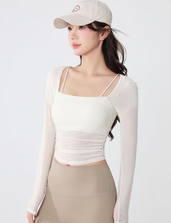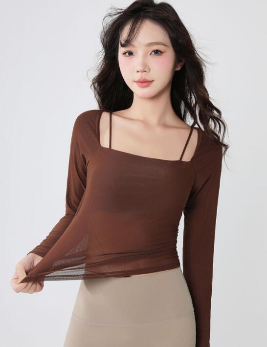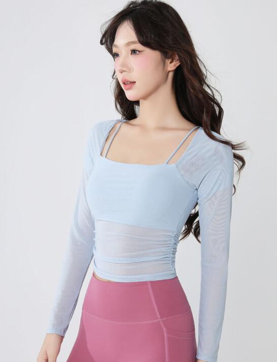 軽やかな素材で動きやすさを追求したヨガウェアの長袖トップス。