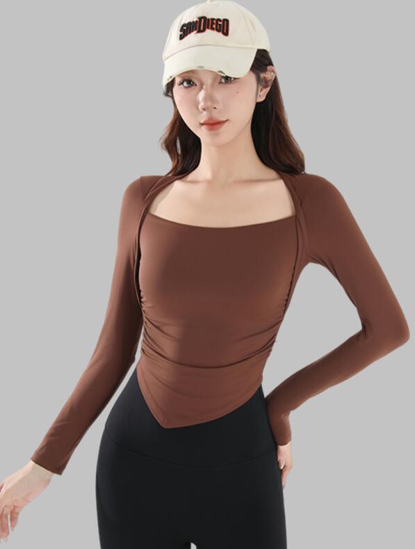 美しいシルエットが魅力的な長袖ヨガウェアトップスです。