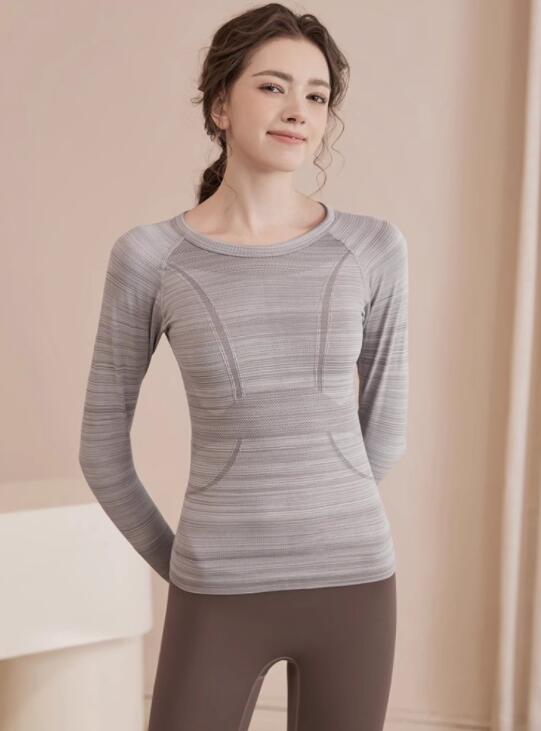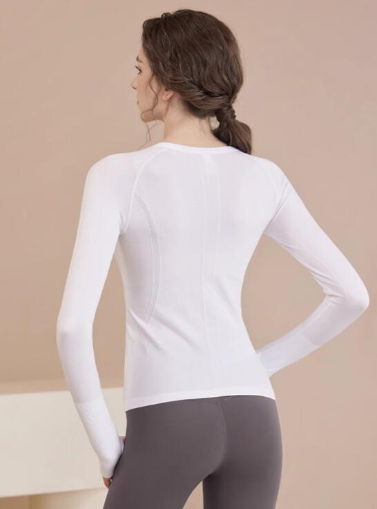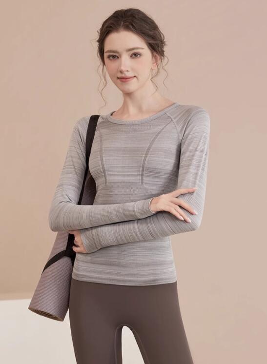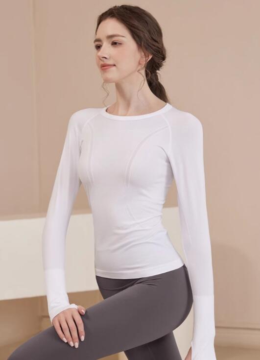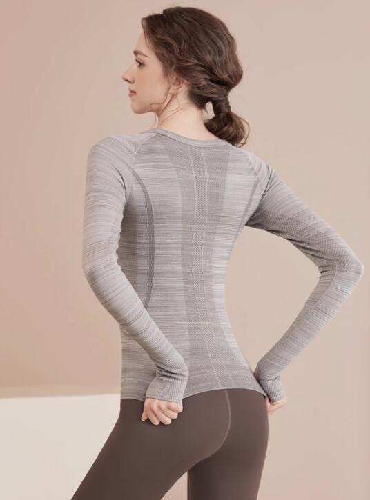 ヨガウェアに最適な速乾素材の長袖トップスです。