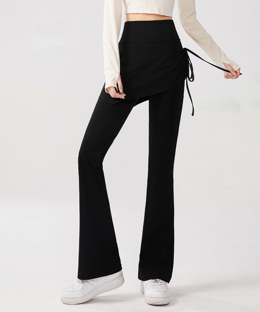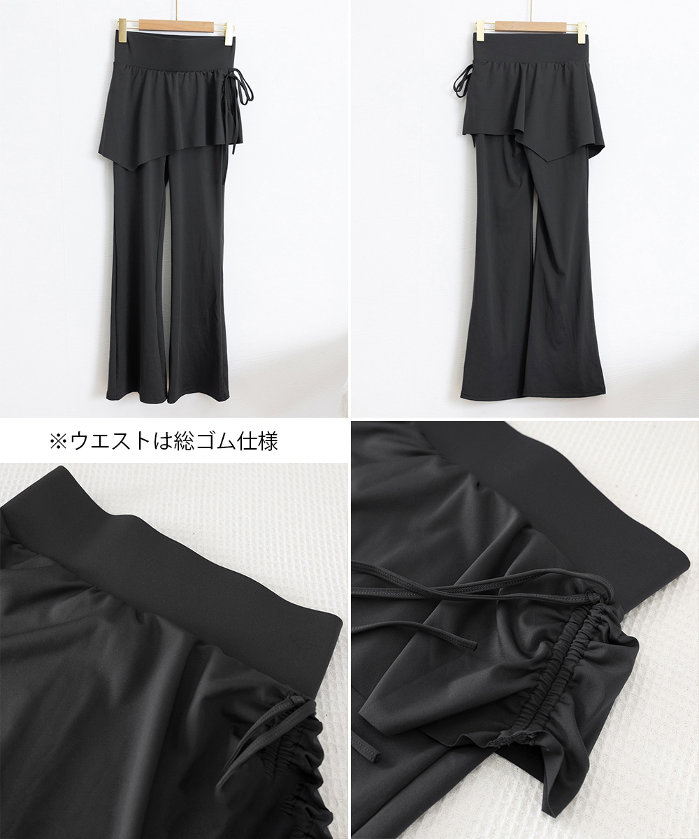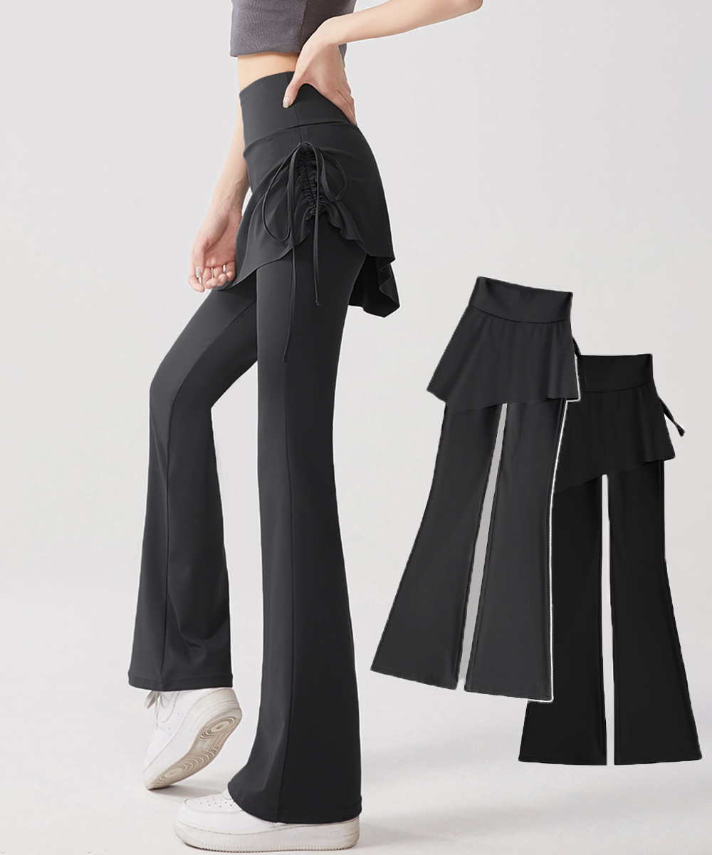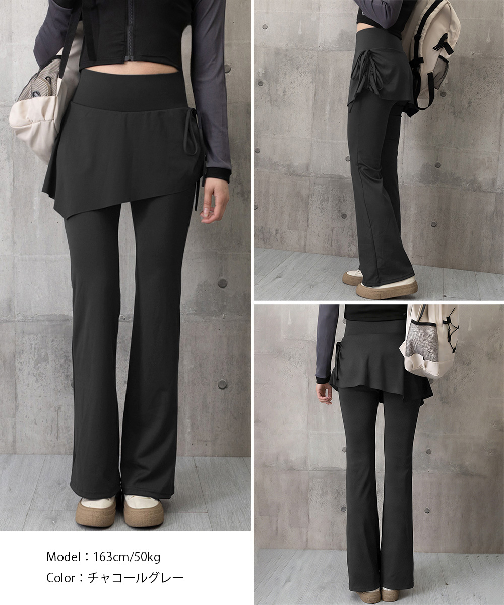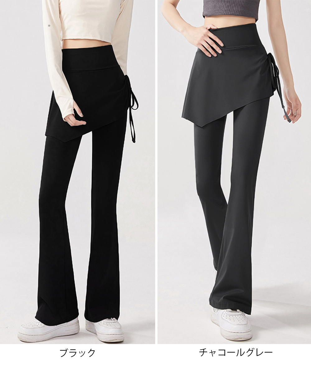 ヨガウェアとして最適なスカート付き一体型フレアパンツ。